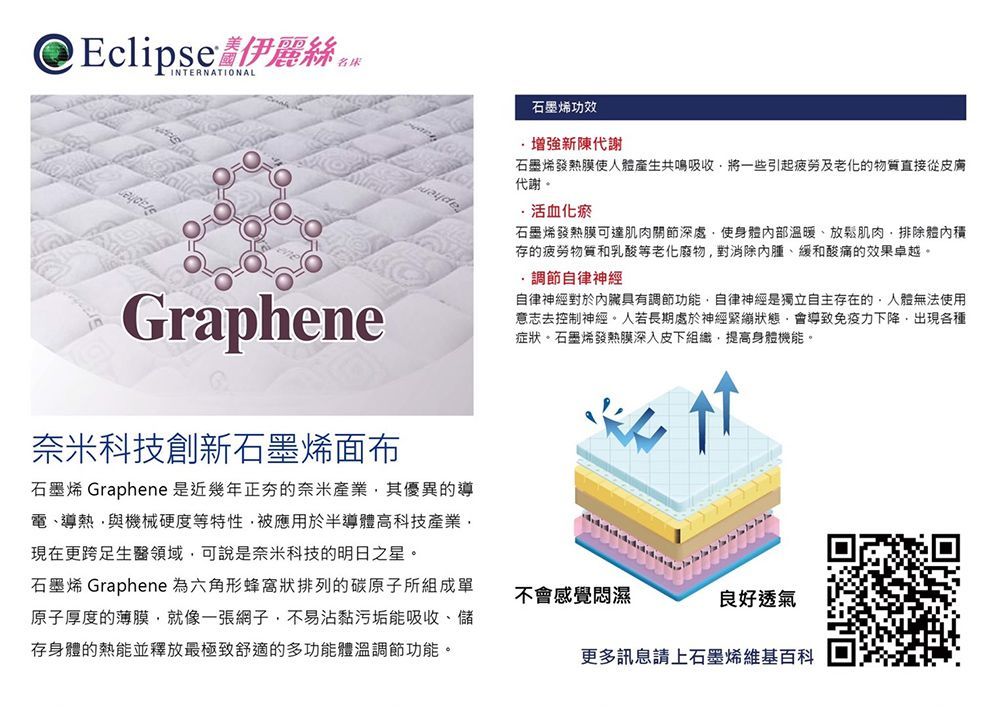 ‧石墨烯多功能調節體溫與儲放身體熱能,不易沾垢